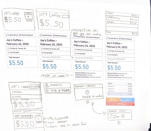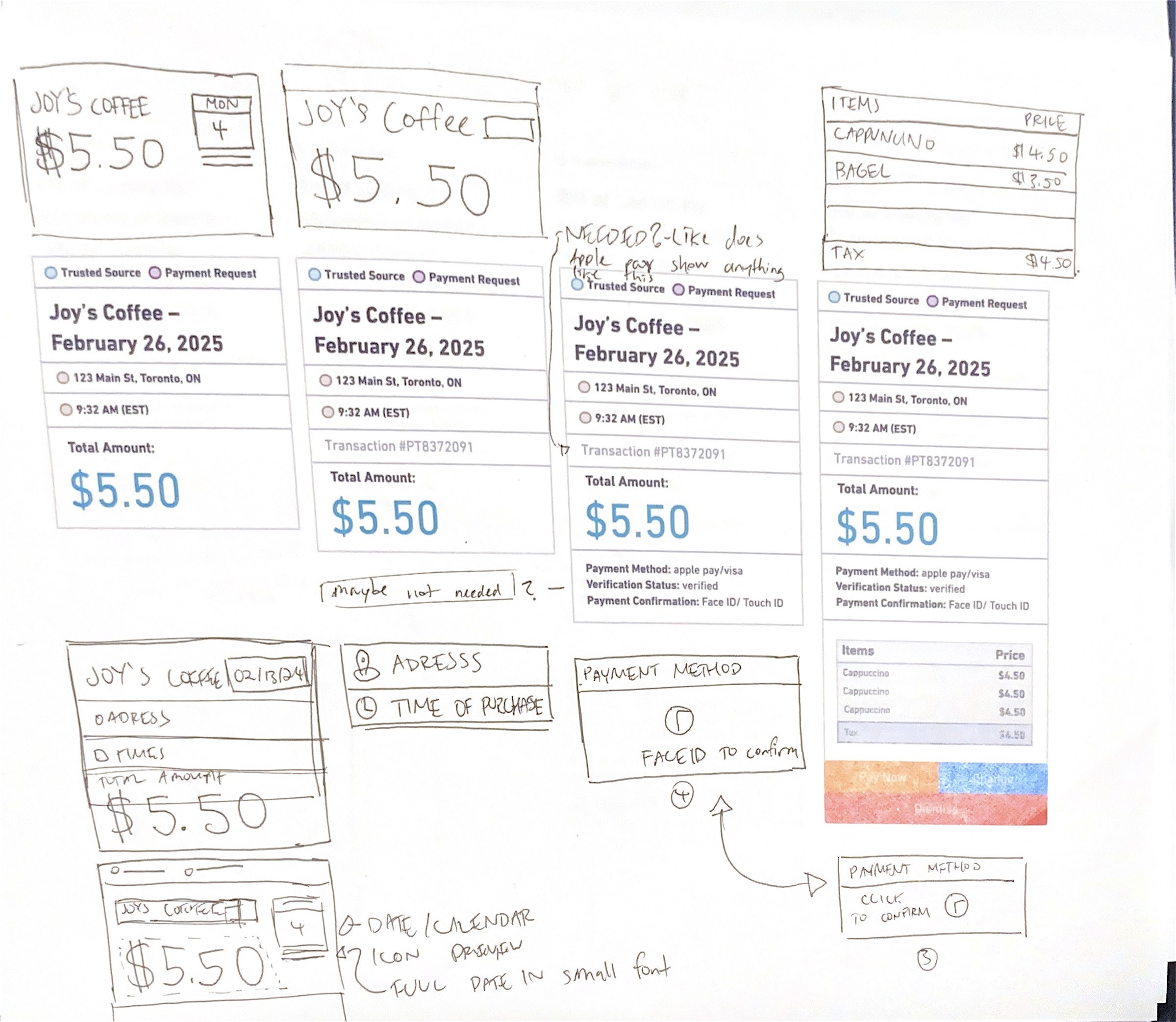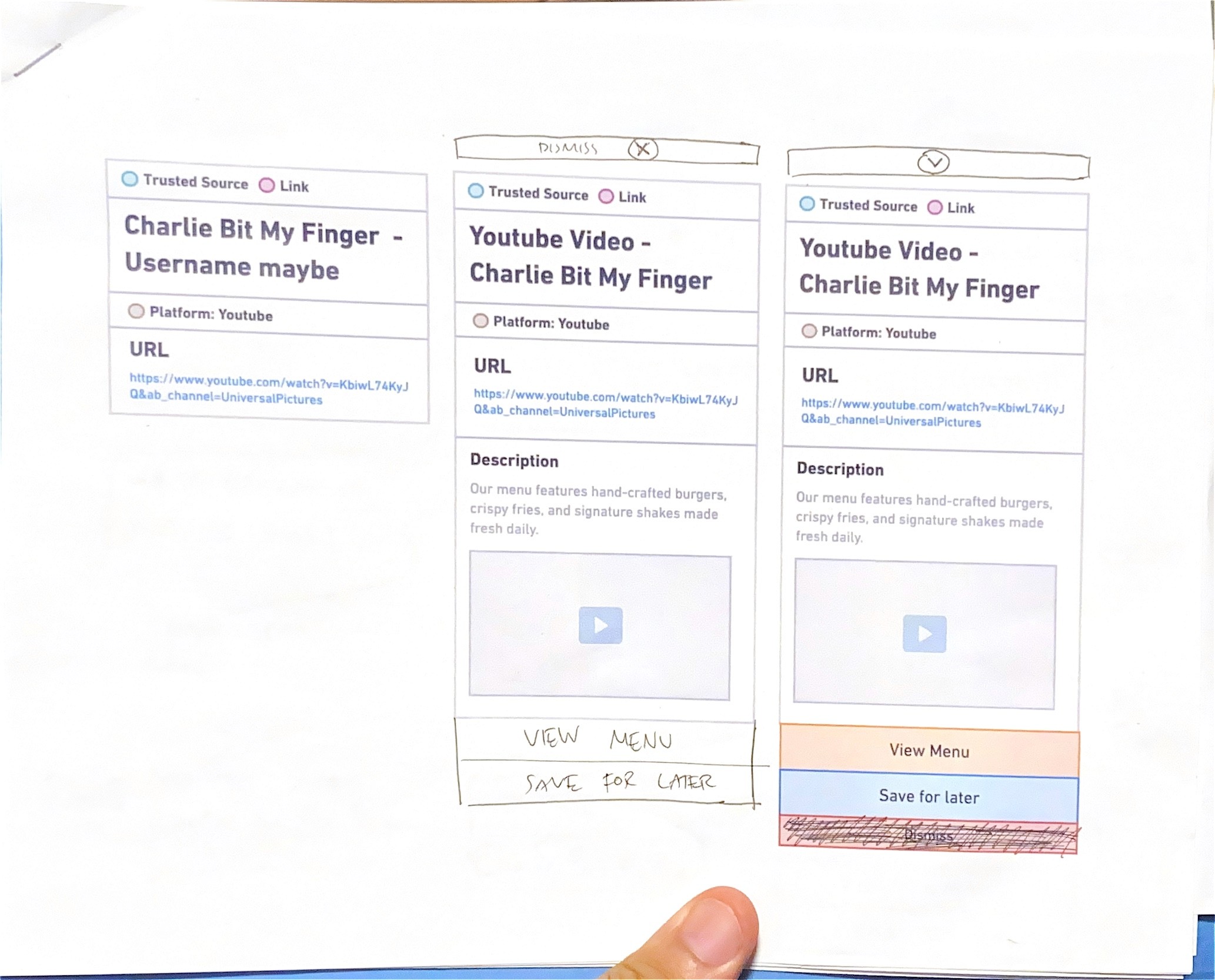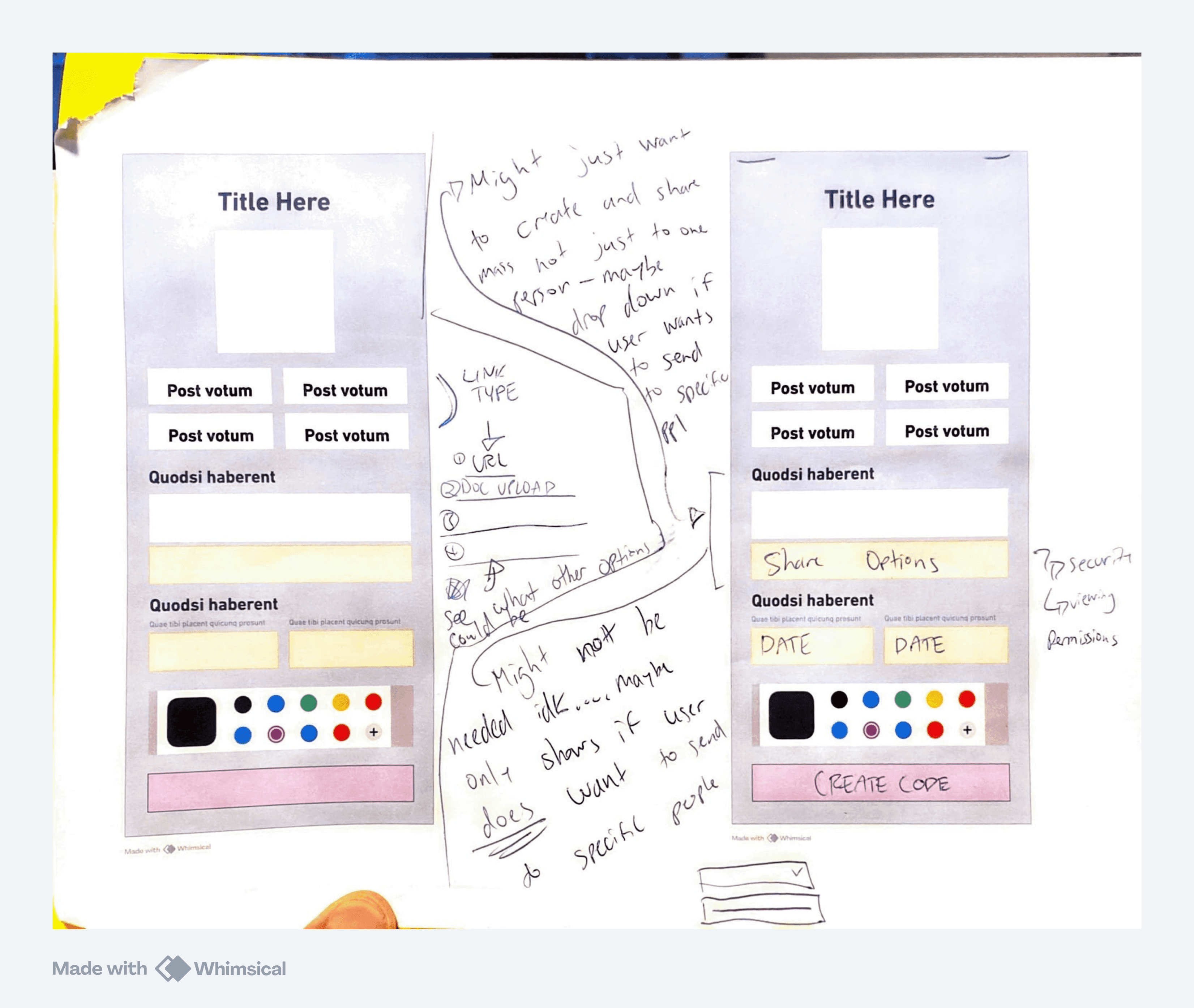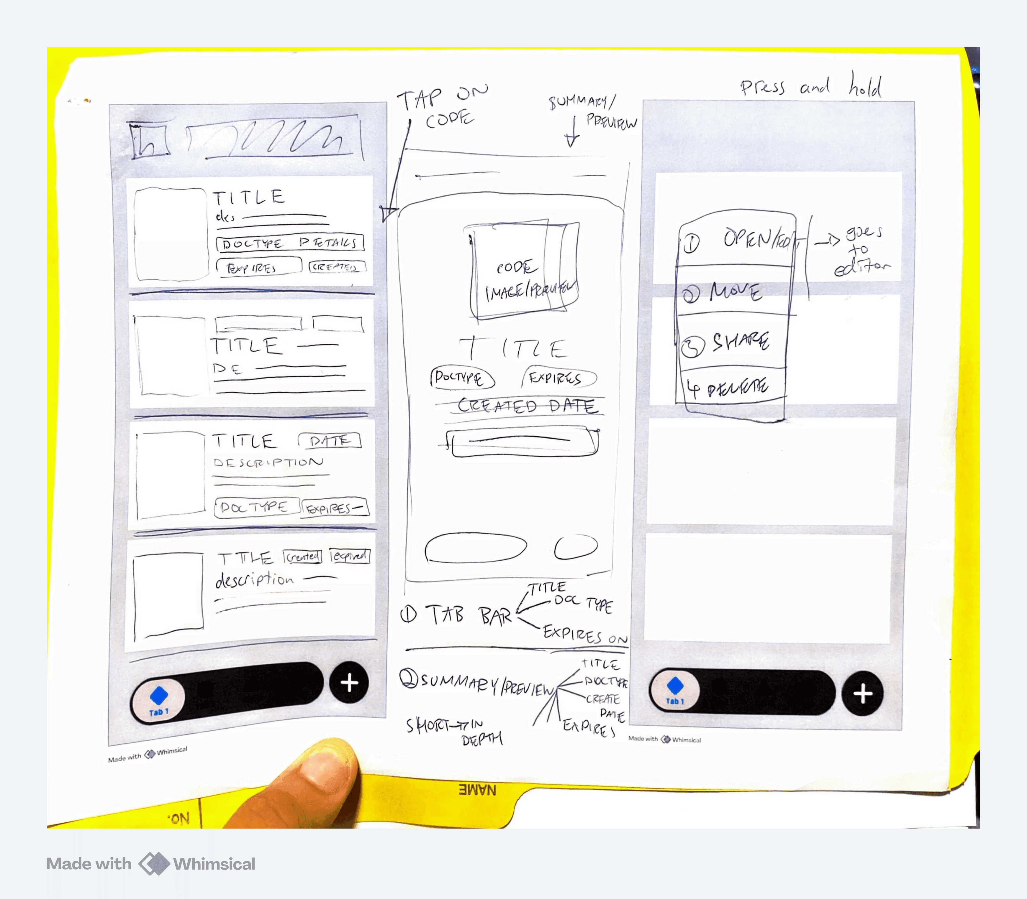 Initial sketches examined how preview overlays can display important information before users decide to open a link. Recognizing diverse user needs, early iterations experimented with generic layouts that treated all QR codes equally. However, this approach quickly highlighted its limitations: for instance, a delivery driver scanning 250 packages requires different information compared to someone checking a restaurant menu.