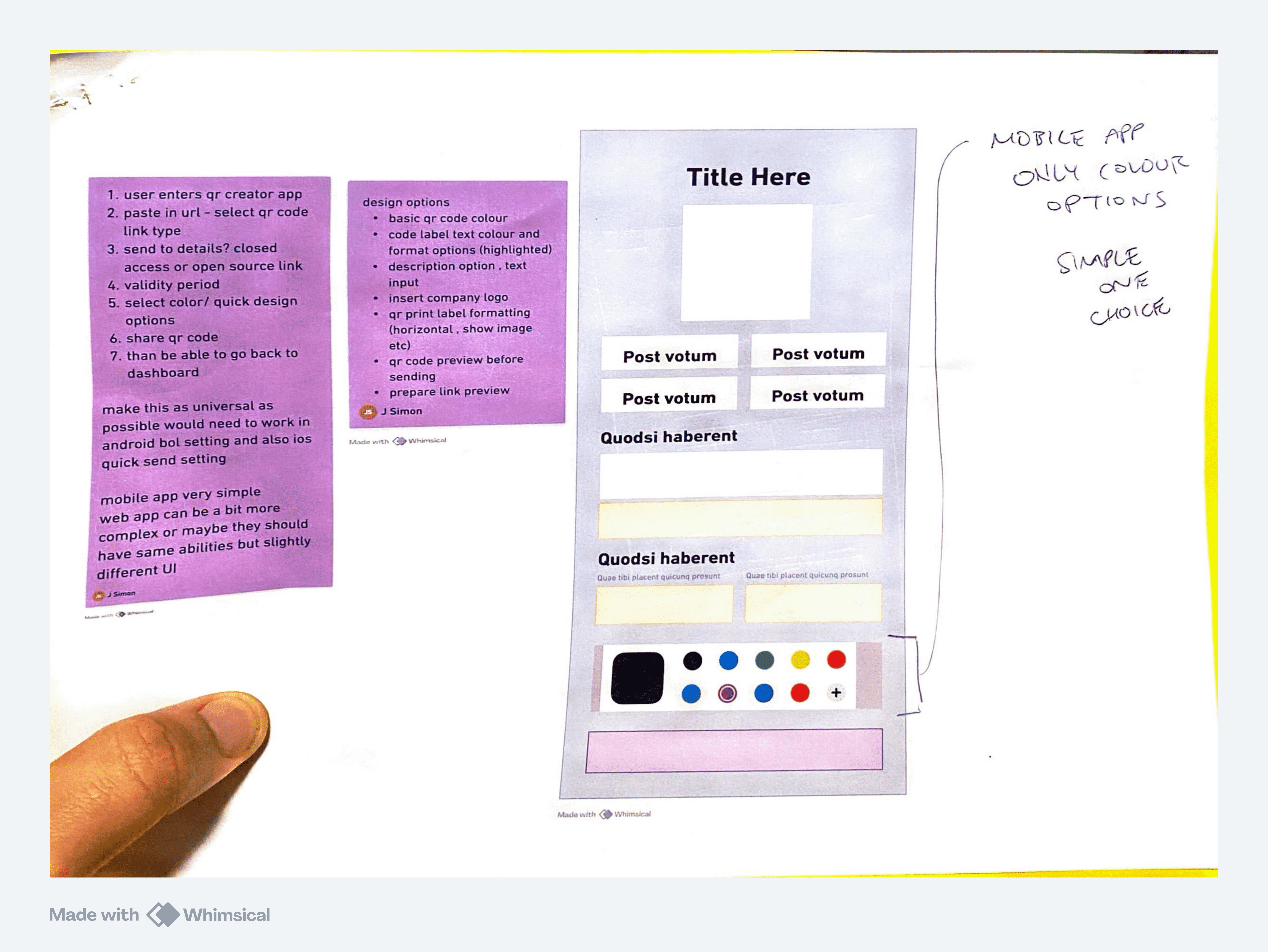 The initial wireframes examined how users would create QR codes with metadata compatible with previews. The challenge was to design a tool that felt native to each platform while ensuring that code generated on any device would display correctly in preview overlays across all platforms.