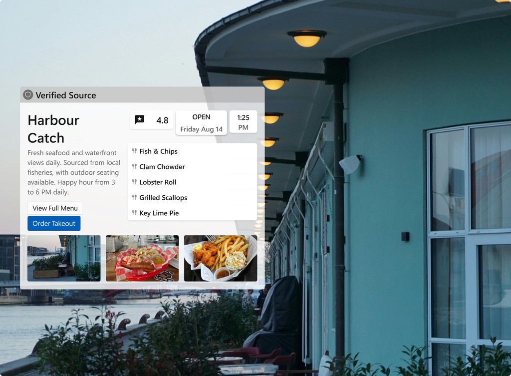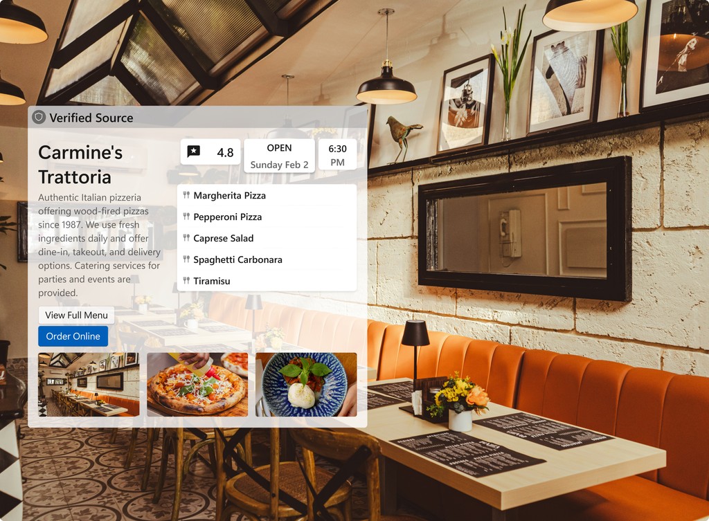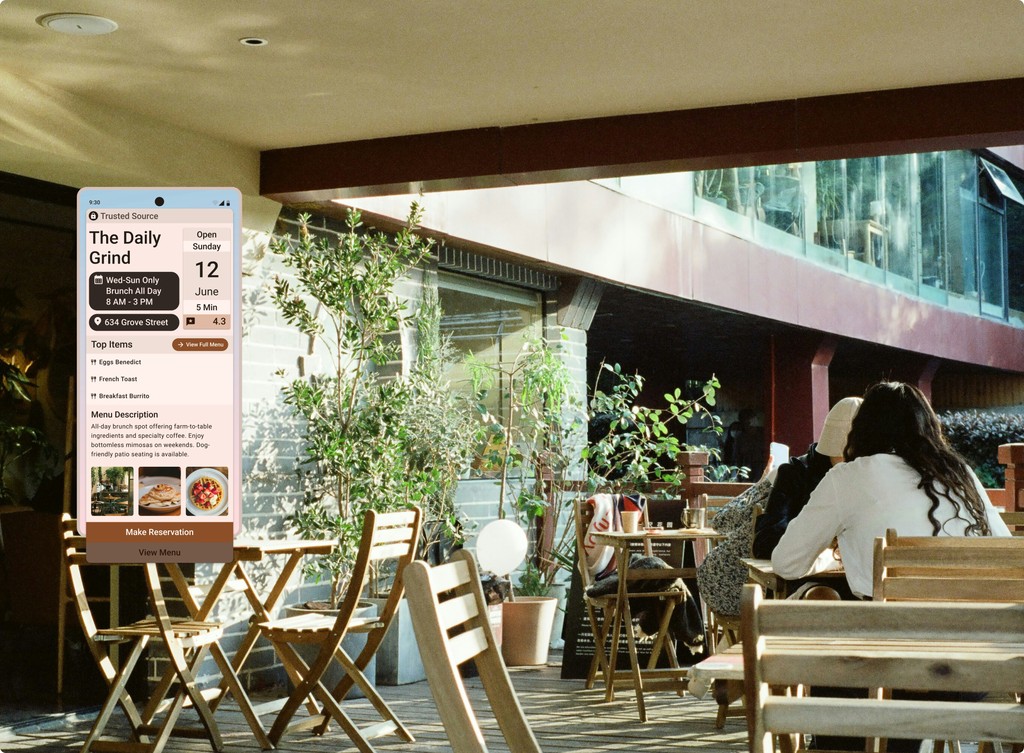 The preview displays the restaurant’s name, hours, location, and, if available, a rating pulled from Google or Yelp. It also highlights a couple of featured menu items or today’s specials. The “Verified Source” indicator appears if the restaurant is the confirmed owner of that QR code. This preview provides the same information you would expect to see on the cover of a physical menu, giving you enough details to ensure you’re at the right place and that it’s legitimate, helping users feel more confident in their choices.