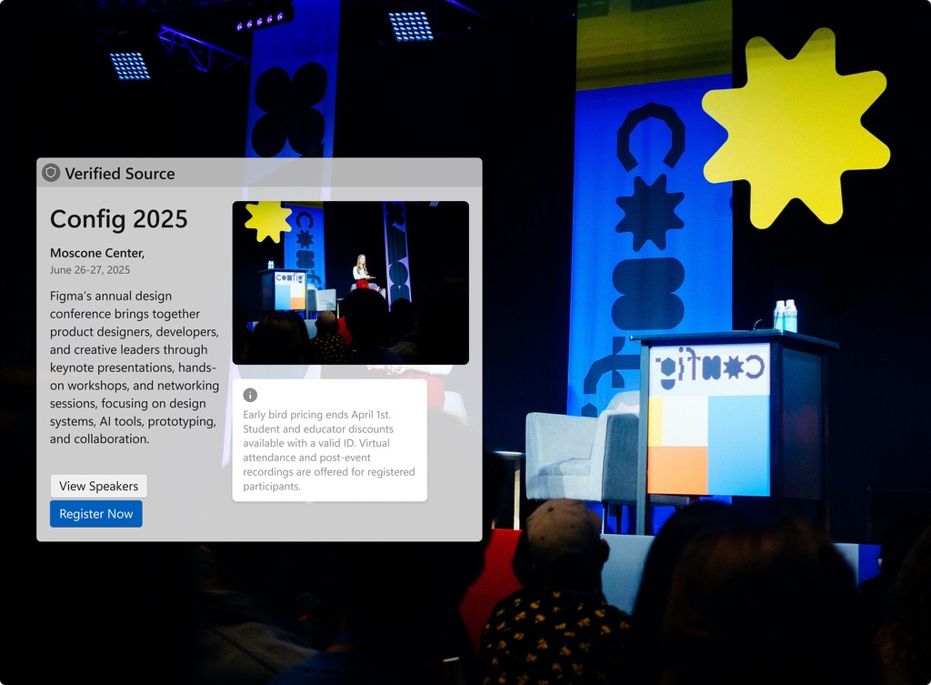 Trust-First Information Hierarchy: Verification badges and source URLs should always appear at the top of every preview, reinforcing legitimacy and security before displaying additional content. This helps users first verify “Is this safe?” before deciding “Do I want this?”, promoting user confidence and safety.