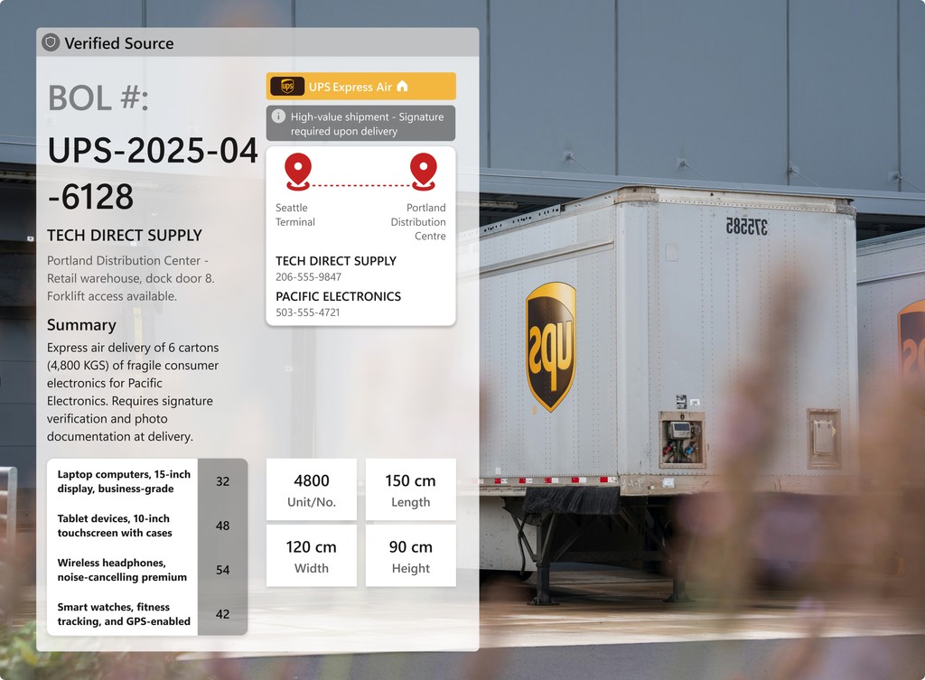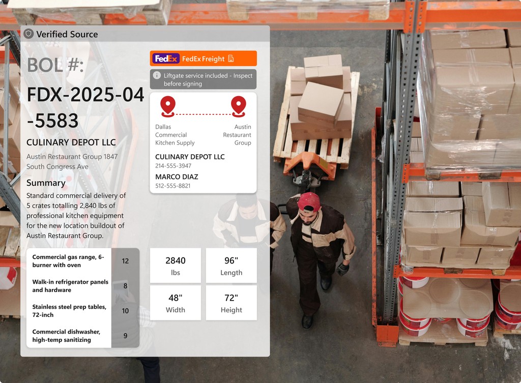 I began considering high-volume, occupation-specific use cases. For delivery drivers scanning 60 or more packages daily, speed and accuracy are crucial. The preview overlay displays the bill of lading number, sender and receiver information, package weight, and any special delivery instructions (such as back porch delivery, signature required, or time-sensitive needs). There are also visual indicators for notices or special handling. The preview remains on-screen just long enough to confirm you’ve selected the correct package from your truck, after which you can tap through to mark it as delivered or view full details, supporting efficiency and reducing errors.